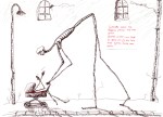 Jag visade även ett antal teckningar med textfragment från många olika texter jag skrivit. Tanken var att skapa en löst sammanhängande historia/parallella historier där texten och bilderna skulle lyfta varandra och skapa en surrealistisk berättelse.